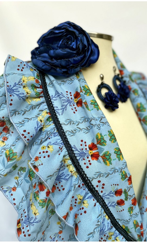 Conjunto Azul de Xale, Brincos de Crochê e Flor