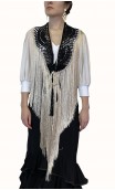 Flamenco fringe. Fringe made of polyamide threads applied on a crochet band. It can be used tied or hold up with a brooch or pin. Hand made.