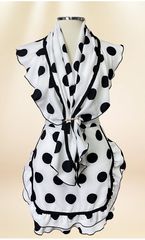 Black and White Polka-Dots Apron & Scarf & Brooch Set